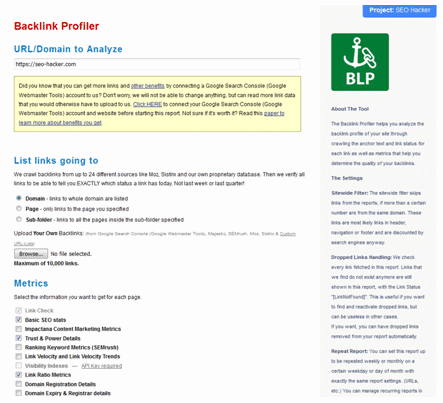 Backlink Profiler (BLP)