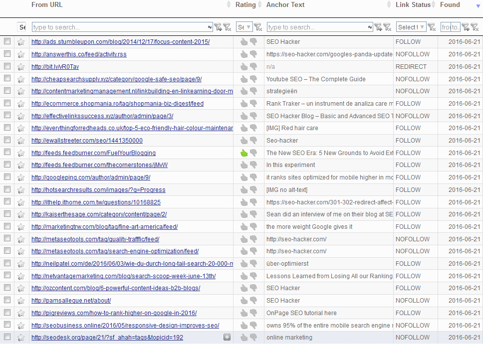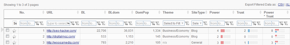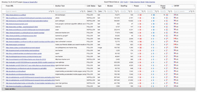 In this example, just like in my previous review, the report showed more than 2,000 prospects for SEO Hacker. This definitely beats having to go through each page in the SERPs just to collate possible link prospects.