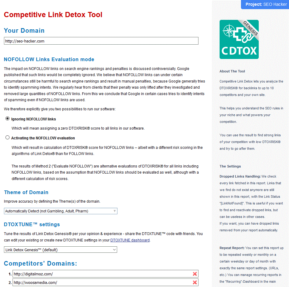 If you want to make sure to get the strongest and lowest-risk links from your competitors, then this Competitive Link Detox (CDTOX) tool is just for you. Not all the links of your competitors may be what you’d like to get for your own website. It is important to determine which links are considered as “natural” thus, beneficial to your website.