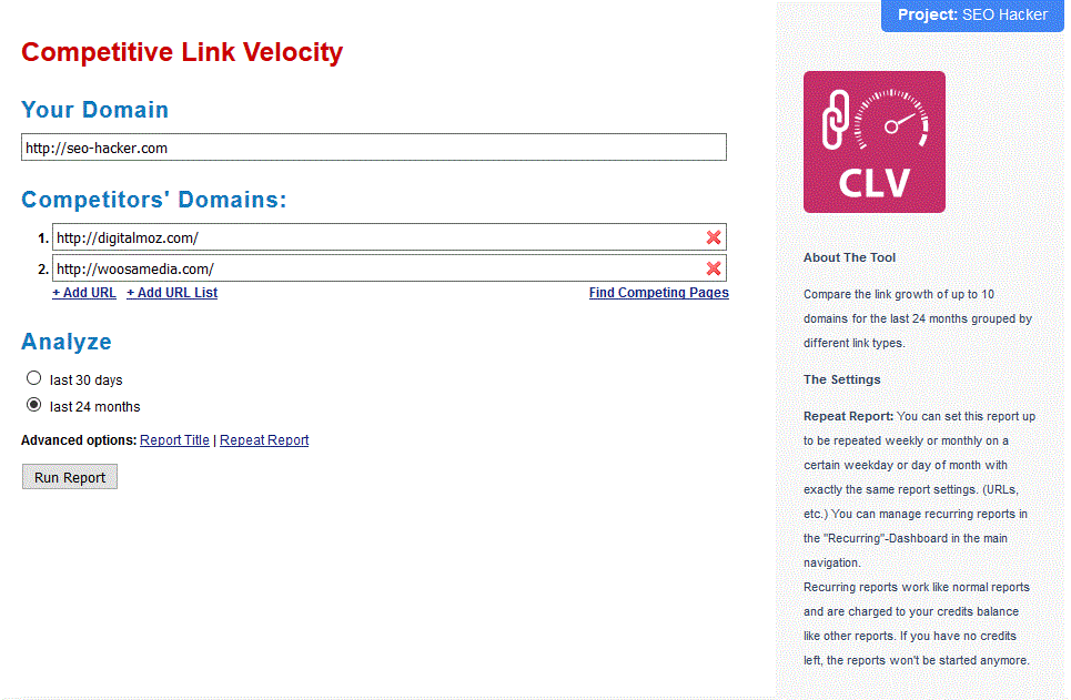 Building links too fast can actually be harmful to your website. You’ll want to take more control over this by using the Competitive Link Velocity (CLV) tool. With this tool, you can view the link growth of your website as well as your competitors’ link growth. There’s no set value when it comes to how fast or how slow your website’s link growth should be. It will depend on what’s acceptable for Google as well as what your top competitors’ link growth is.
