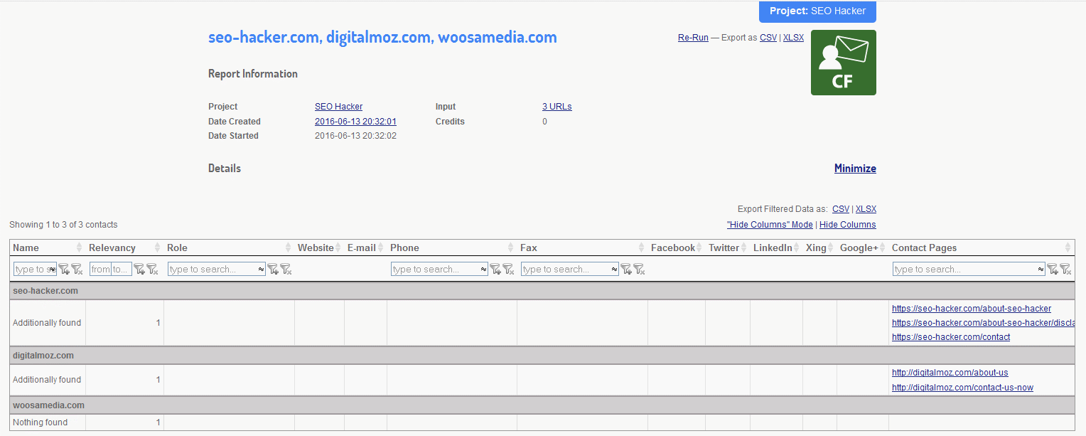 Just like with the SERP Research tool and Contact Finder tool, there isn’t much of a difference with regards to the look of the reports from the previous review and with the present one. It still provides quality data based on the metrics that were chosen in generating the report.