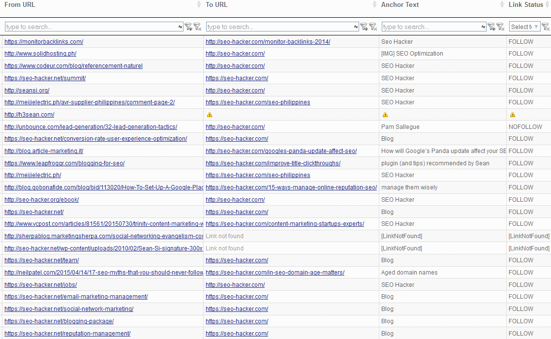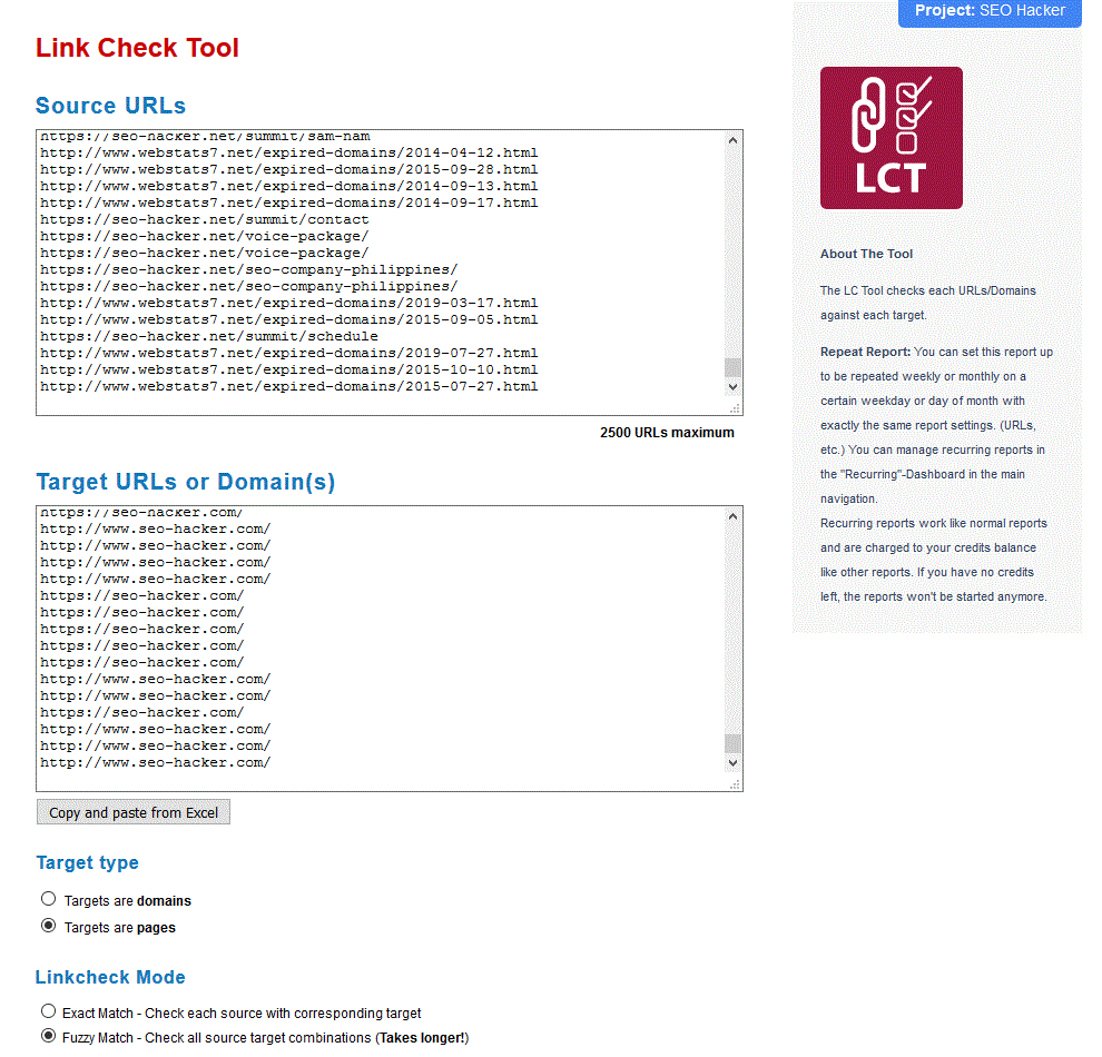 Do you find yourself wondering at times if the backlinks that you’ve built are still live? Well, the answer to your question can be found in the Link Check Tool (LCT). The tool can check the validity of your links alongside all the desired metrics that can be chosen right before the report is generated. If you know the specific source and target URLs, then you can run the report in exact match mode. If you’re a little bit “fuzzy” or unsure of the target URLs that your Source URLs are linking to, it would be best to select the Fuzzy Match mode (as I have in this sample report) although do take note that this takes longer to generate. It can even act like the Link Alerts tool if you use the recurring feature. The main difference between the two is that in this tool, you can specify the Source URLs and Target URLs as well as manually generate the report at will as opposed to just waiting for the backlinks data to come in on its own.