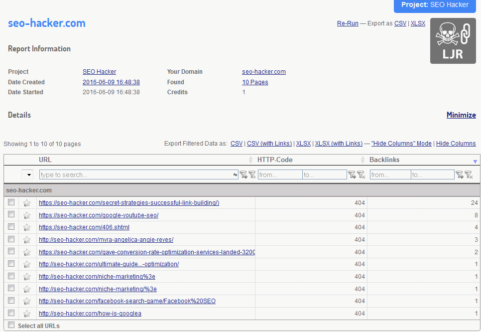 Yet another one of the tools that I reviewed previously is the Link Juice Recovery Tool. If you’ve ever experienced clicking on a link and then arriving on a “dead” page, then it must’ve been a disappointing experience to say the least. The LJR tool helps prevent this from happening by finding the missing pages and reclaiming them. This would best be used when you create or transfer your website to a new domain and you want to re-create those lost links.