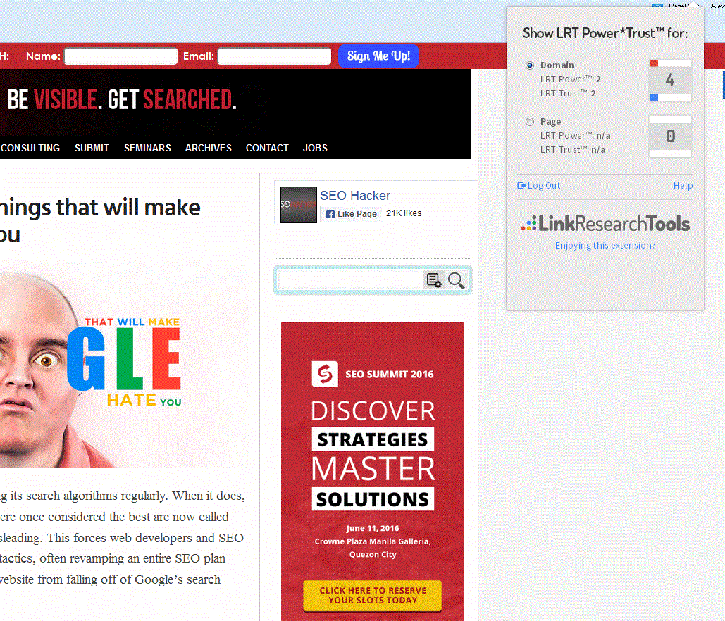 With Google’s PageRank saying goodbye, it was obvious that a new browser extension alternative for it to be made. Say hello to the LRT Power*Trust browser extension (formerly CEMPER Power*Trust). It’s a seamless add-on to use and convenient too, that is, if you have a registered account. With a free account, only the LRT Power*Trust value on a domain level can be seen. To see it on a page level as well, you’ll need a full account. While it’s a great add-on to your browser, this could dissuade some users to make use of this as unlike most add-ons, this one requires you to have an account before being able to use it. This extension is available for both Chrome and Firefox.