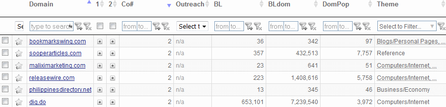 Under the Co# column, you can see the number of common links for each domain. The other usual metrics are present as well which can be used as a support to determine the quality of the backlink sources.