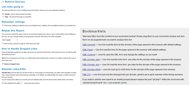 There are a bunch of settings that you can tinker with from restricting link sources to show only certain domains (such as .edu and .gov) to setting how you want your dropped links to be handled. There are even bookmarklets that makes the whole process even quicker.