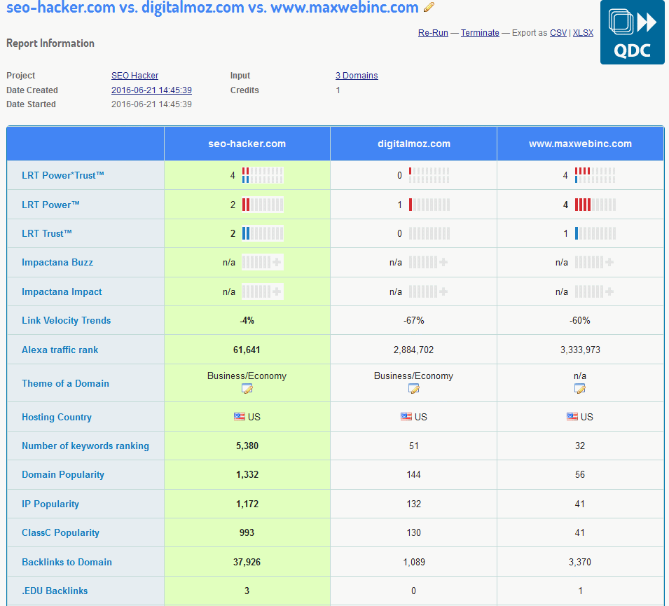 From LRT Power*Trust and other LRT metrics to the social media metrics, this report can give you a side-by-side comparison of various SEO metrics that are important in making fast and well-informed decisions. So for the next time you’re caught in the middle of the meeting being unprepared, make sure to keep this handy tool in mind.