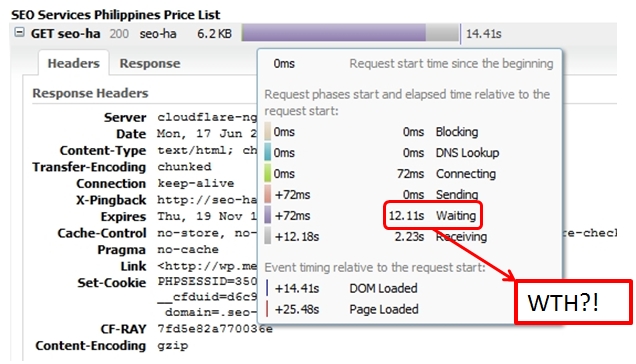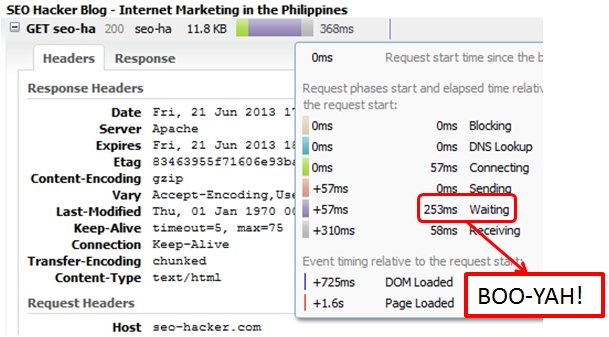 I’m not gonna lie to you, I still don’t know what most of these mean and what they are for. But for what I know, I’ve improved – and it has reflected to a very improved site load speed for SEO Hacker. Here’s my current ‘Waiting‘ server response time.