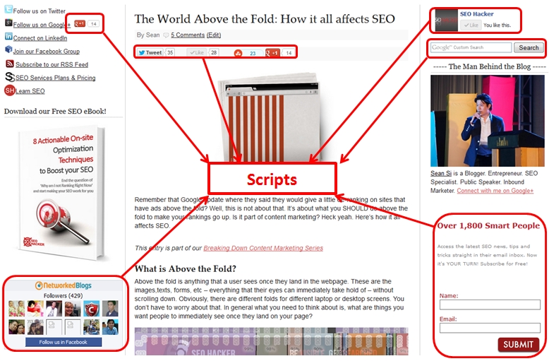 Just so you know, SEO Hacker blog runs on a lot of scripts – mostly java script. Here are some of the visible scripts that I’m running: