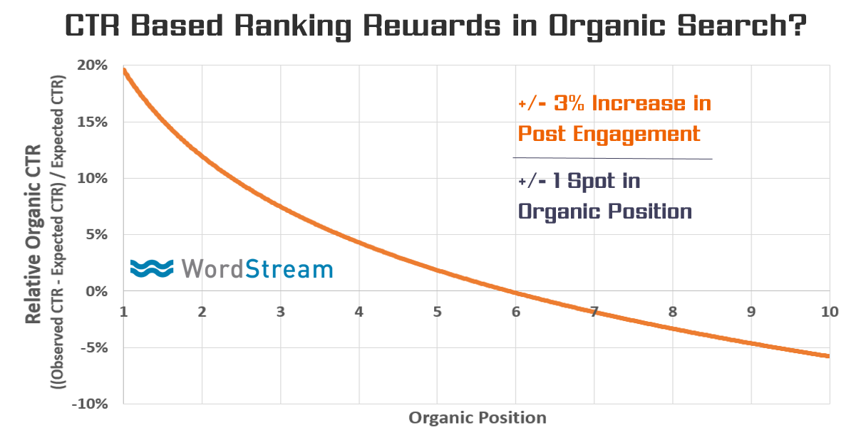 To verify this WordStream conducted a test to see whether or not an above average CTR would mean higher rankings. This is what they found: