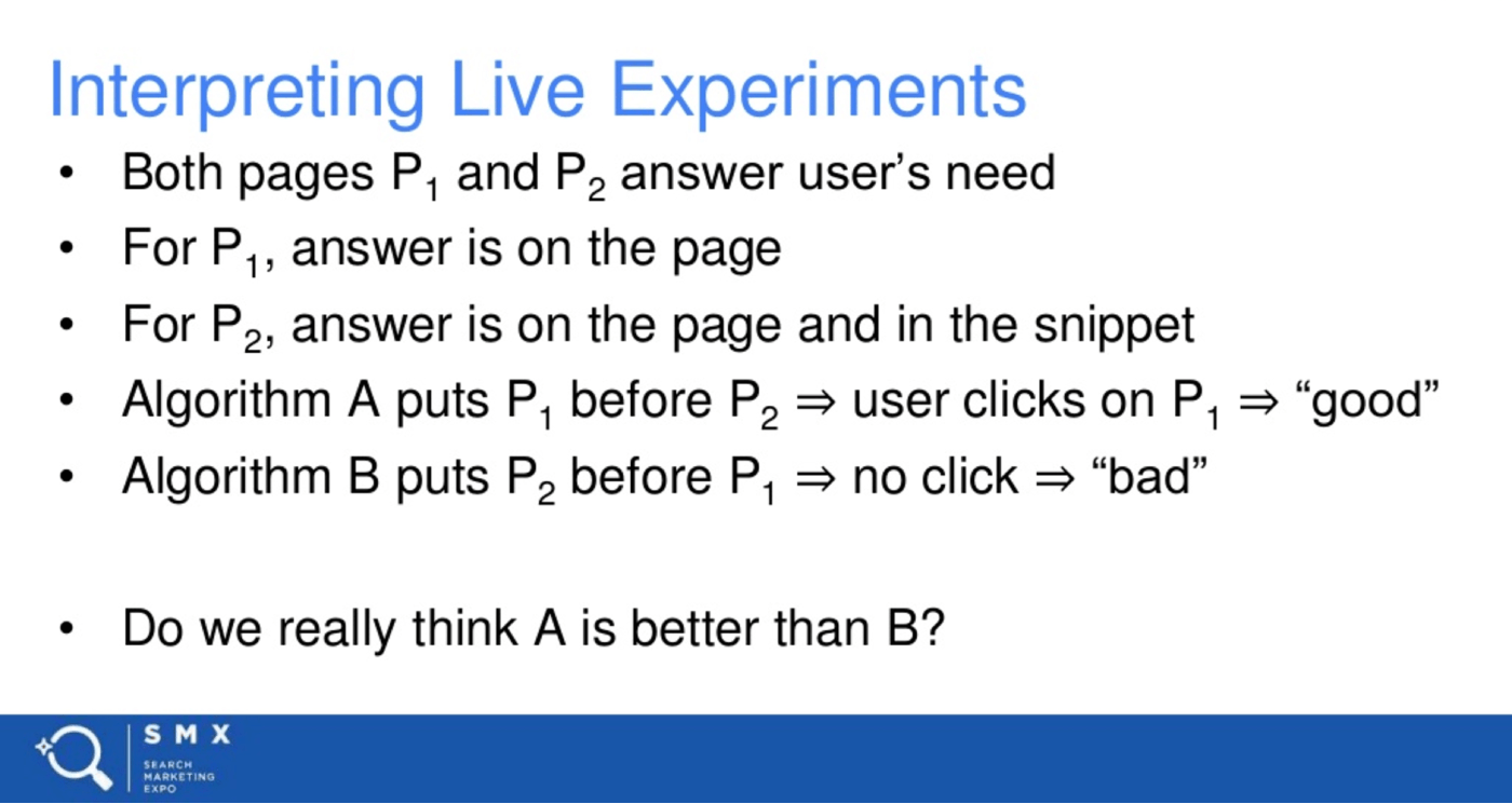 In other words, the slide is basically saying that the new algorithm sometimes ranks pages higher up then they “should” rank. Also, if that page gets an above average Click Through Rate, Google could use that as a sign that the page should get a permanent ranking boost.