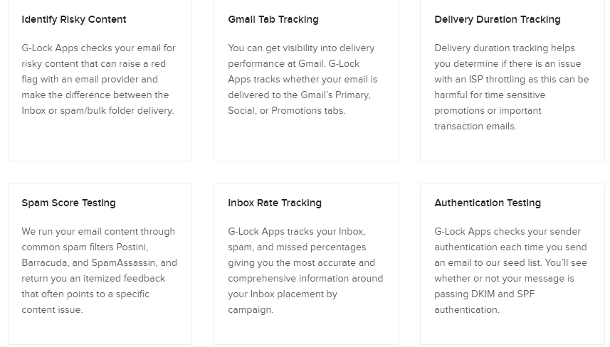 G-Lock Apps started out precisely because of the question “Why are my Emails going to spam?” and built around that problem are tools and solutions to avoid that in the first place. Essentially, G-Lock Apps is a deliverability and spam-testing tool all-in-one package.
