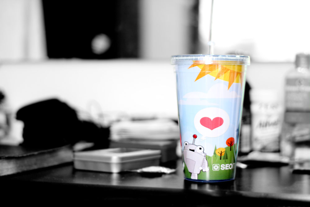 The SEOmoz Tumbler was really nice. I wanted a tumbler with straw ever since but I was trying to save up (and I was reasoning to myself “I didn’t need one”). Thanks to SEOmoz I finally have one! And with Roger’s picture to boot!